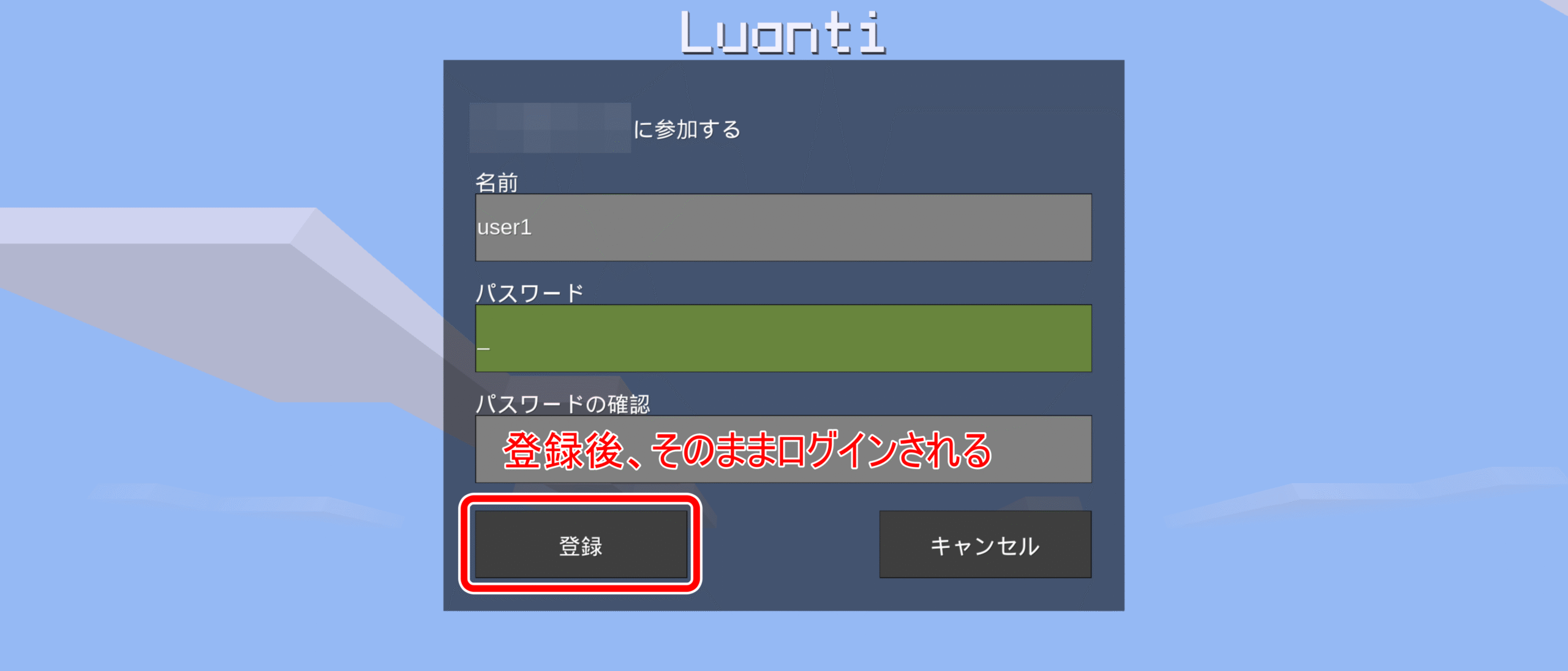 ユーザー名とパスワードを決め、「登録」をタップします。