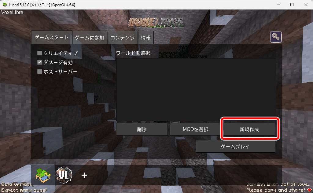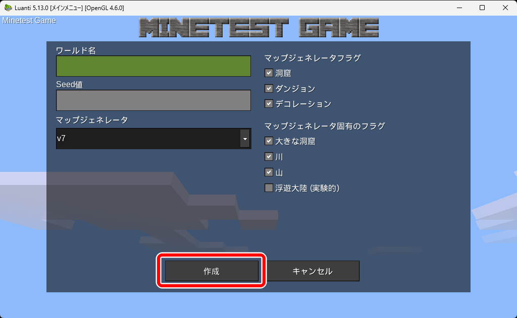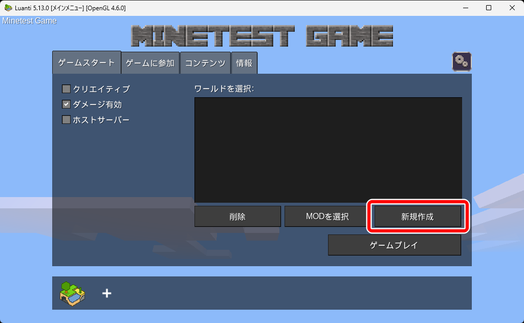 マインクラフトと同じように、最初にワールドを作成する必要があります。