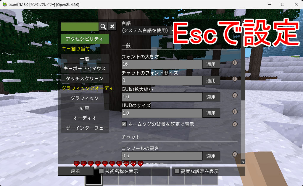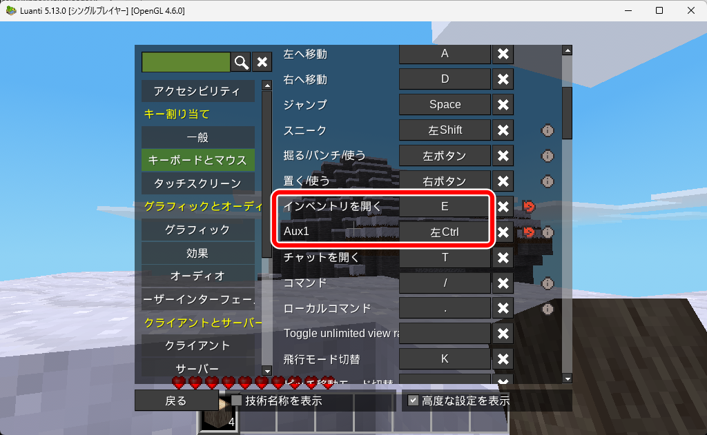 キーボードやマウス操作も、ほとんどマインクラフトと同じなのですが、これだけは変更しておきたいという箇所が、一つだけあります。