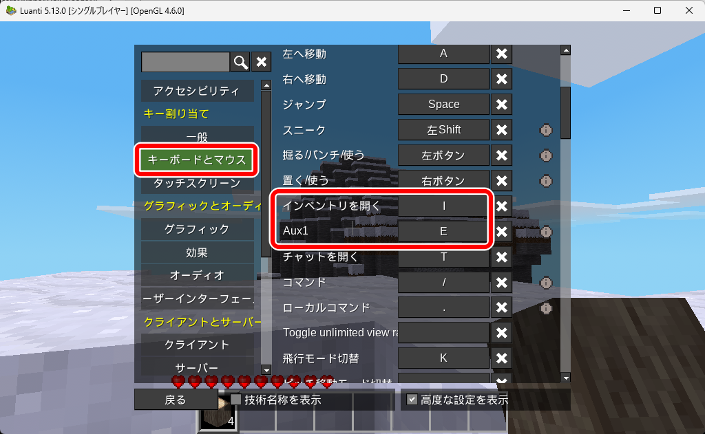 マインクラフトユーザーは、「インベントリを開く」が「E」でないと、ストレスを感じると思います。