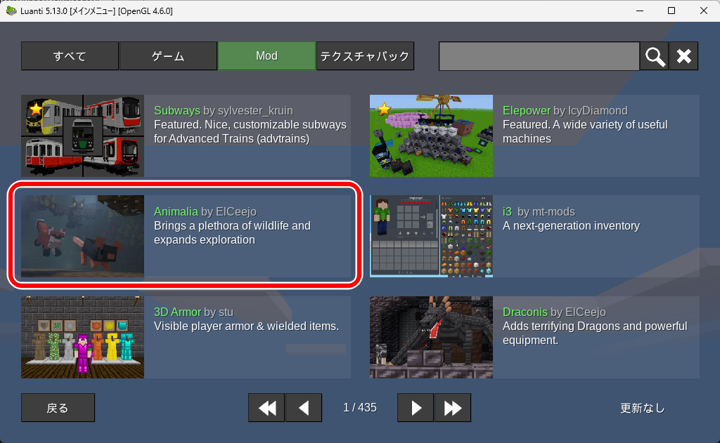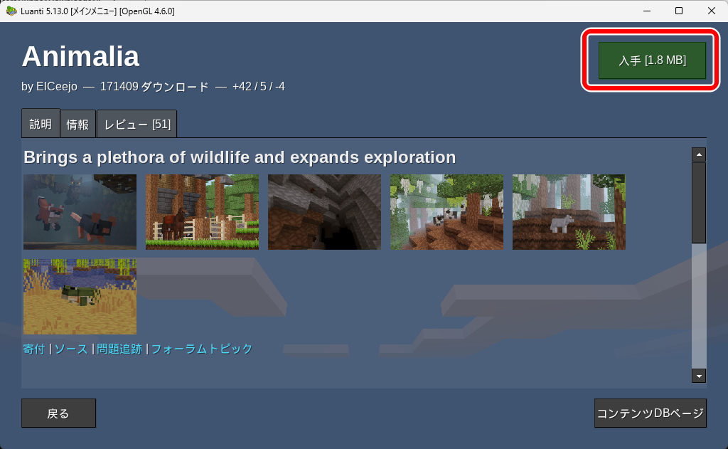 ここでは、動物を追加するMOD「Animalia」をインストールしてみたいと思います。