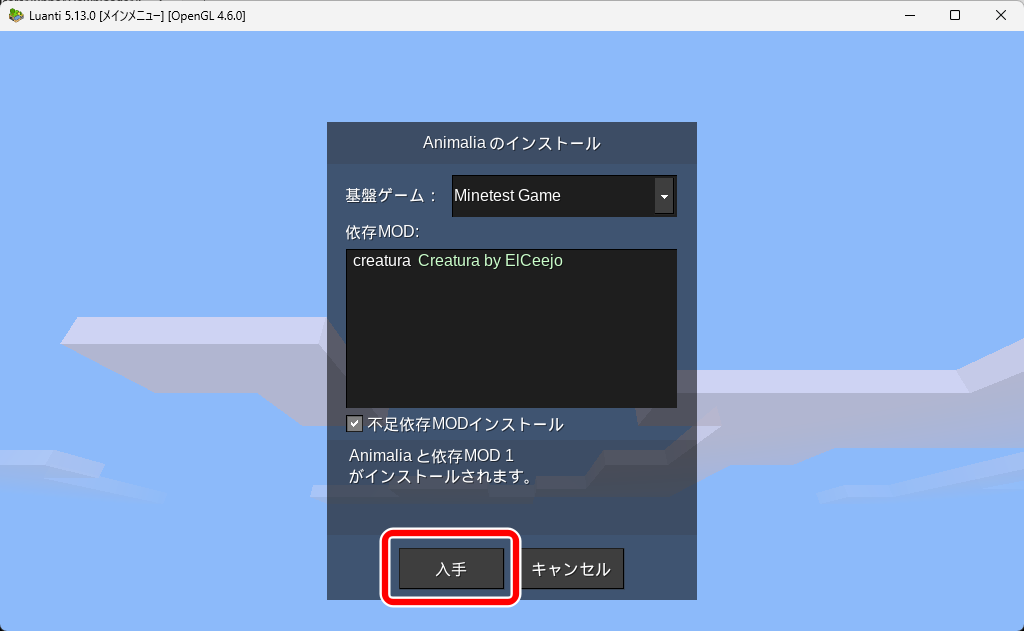 ゲームエンジン本体とMinetestは、「LGPL 2.1+」というソースコードを公開し、著作権表示を除去しない、というライセンスで提供されていますが、インストールするゲームやMODは別のライセンスとなっている可能性があるため、注意が必要です。