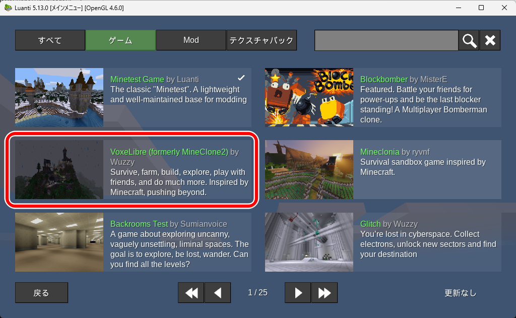 現在Minetest自体は、Luanti内の一つのゲームとして遊ぶことができます。