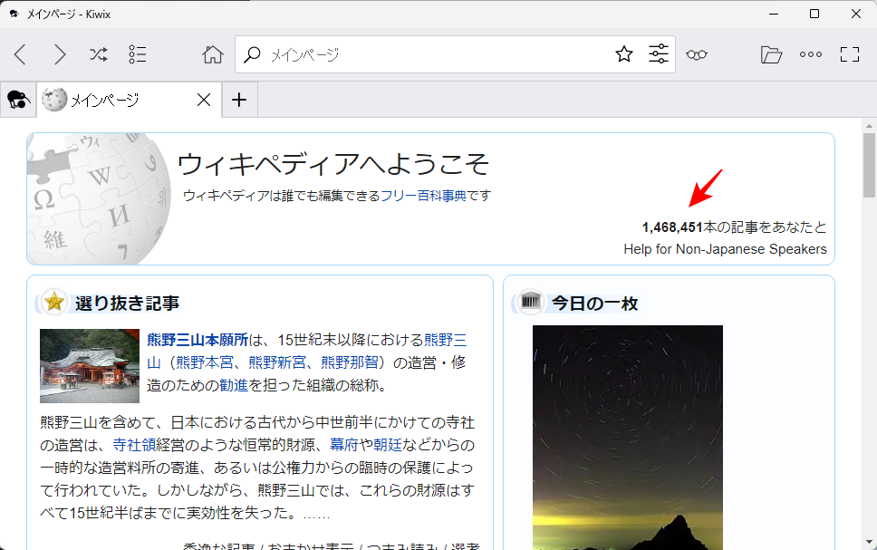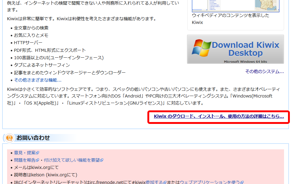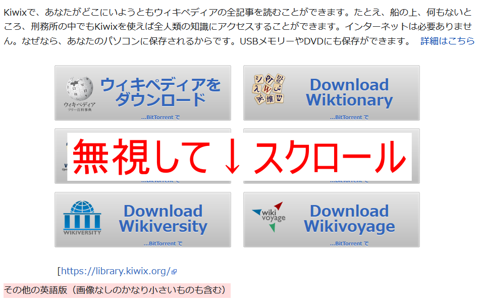 ブラウザで「https://wiki.kiwix.org/wiki/Main_Page/ja」にアクセスします。
