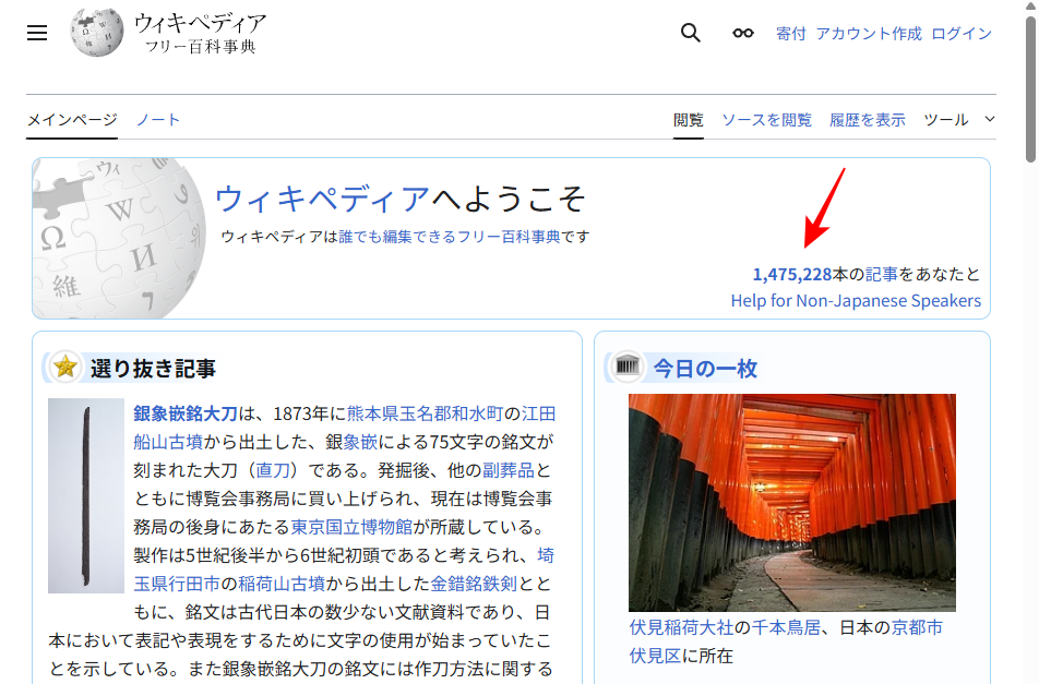 ブラウザでアクセスすると、「1,475,228本」の記事が確認できます。