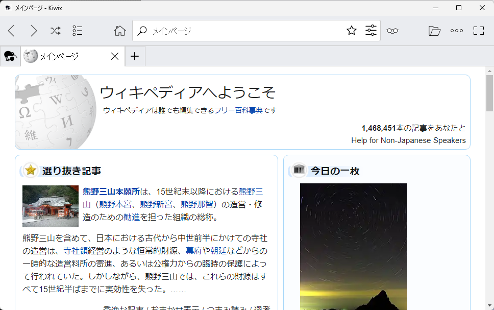 Kiwixは、Wikipediaをオフラインで閲覧できるアプリです。