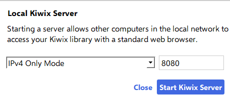 ポート番号を確認し、「Start kiwix Server」をクリックします。