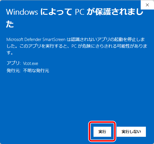 ダウンロードしたZIPファイルを展開し、「Vcot.exe」を実行します。