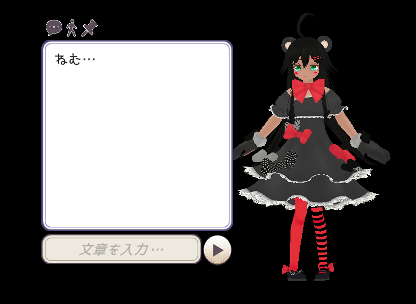VOICEVOXと連携して、キャラクターに喋らせることができます。