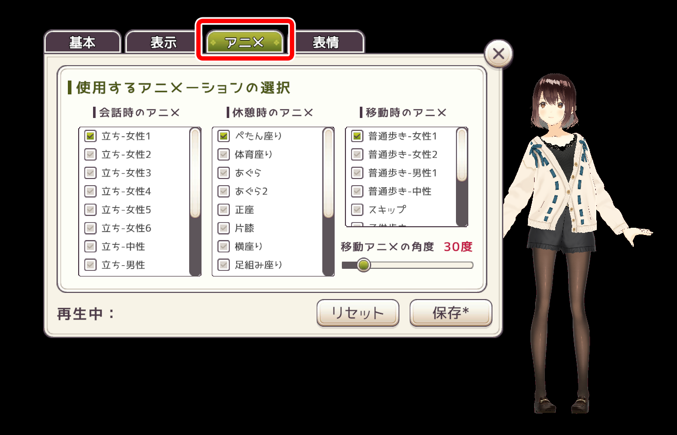 Vcotのキャラクターを右クリックし、「設定」をクリックします。