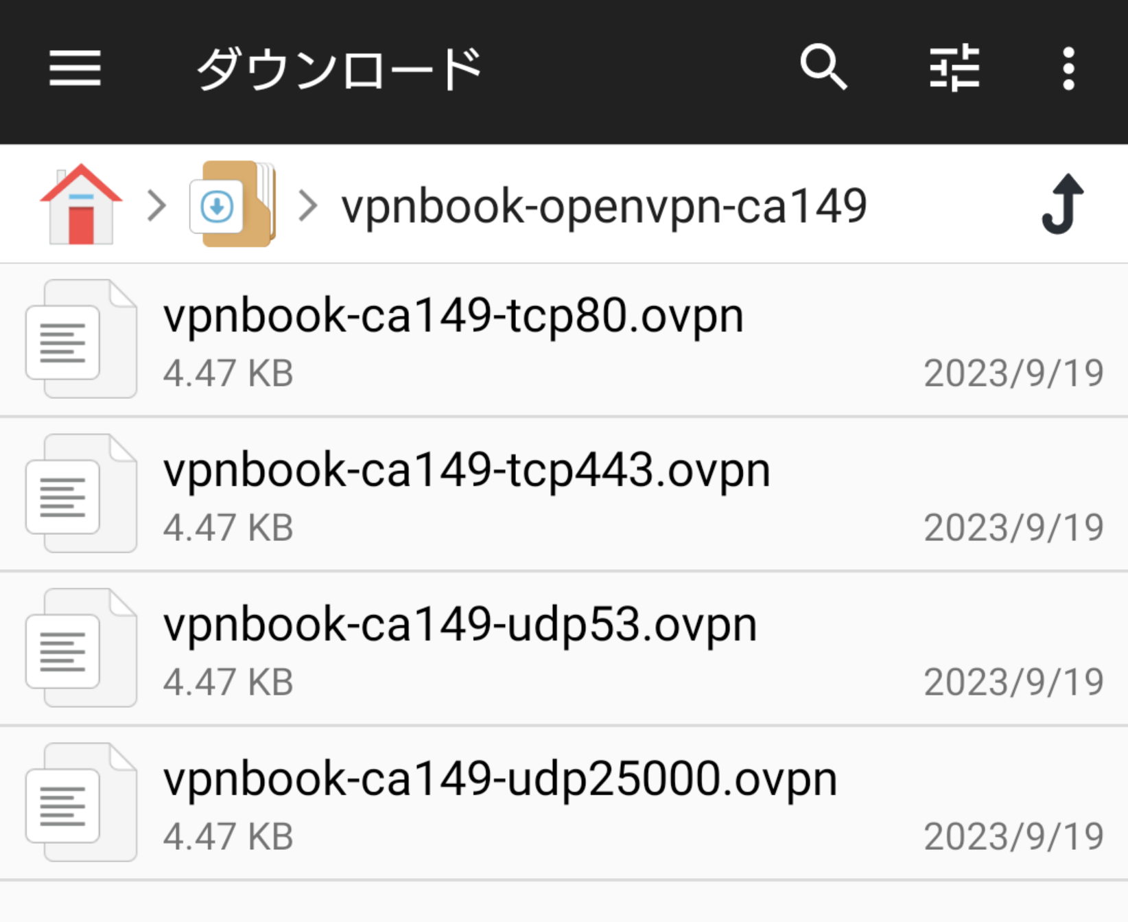 OpenVPN Connectアプリを開き、「.ovpn」ファイルを読み込みます。