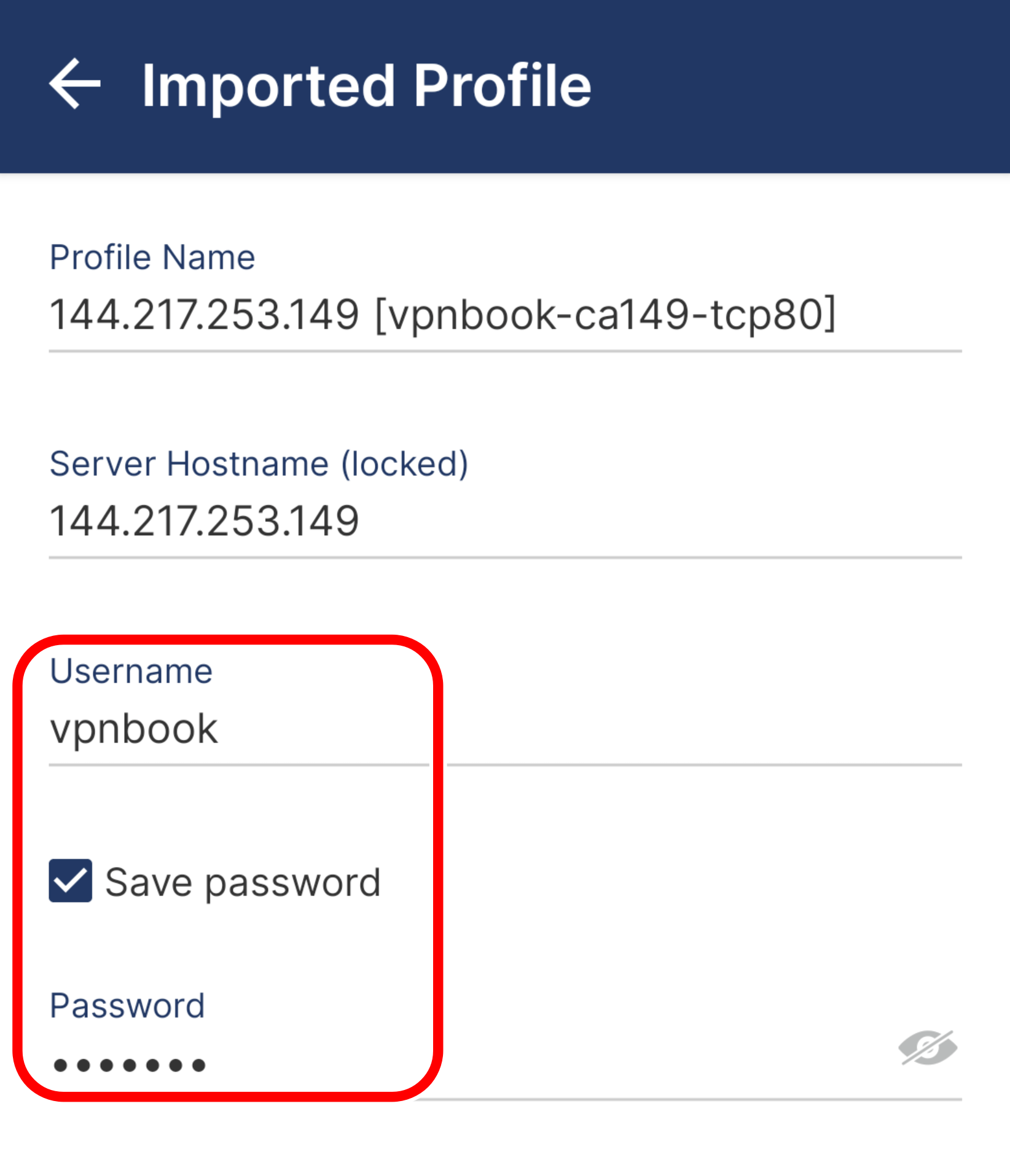 プロファイルは自動的に登録されますが、ユーザー名とパスワードだけ手入力する必要があります。