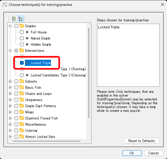 学習したい解法にチェックを入れます。
